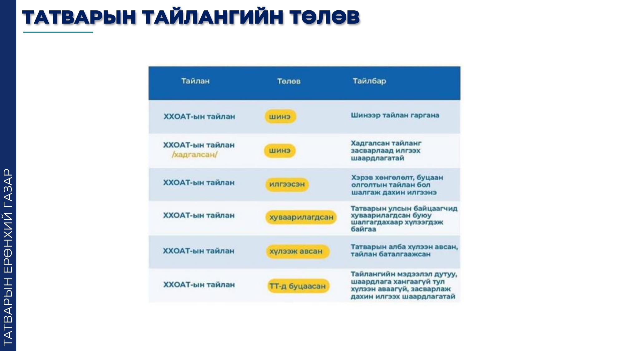Татварыг тайлагнах,төлөх