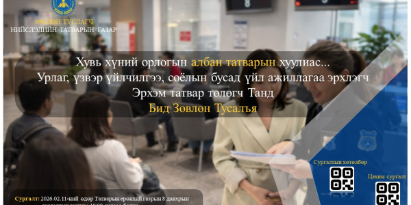 МОНГОЛЫН ТАТВАРЫН АЛБА ТАТВАР ТӨЛӨГЧИД ЗӨВЛӨН ТУСЛАГЧ АЛБА БАЙНА